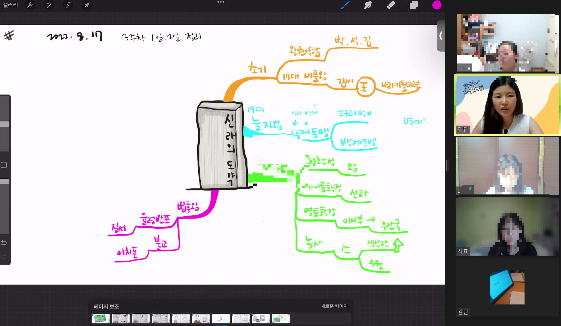 한국사 마인드맵은 현상진선생님과 함께하는 생각지도 연구소에서 진행하는 장기 프로젝트입니다. 저는 그곳의 강사로 속해있습니다. 중고등학교 시절에는 한국사를 외우는 과목으로 생각했습니다. 재미가 없었어요. 한국사를 마인드맵으로 공부하는 강의에 대한 의뢰가 왔을 때 자신 없었습니다.